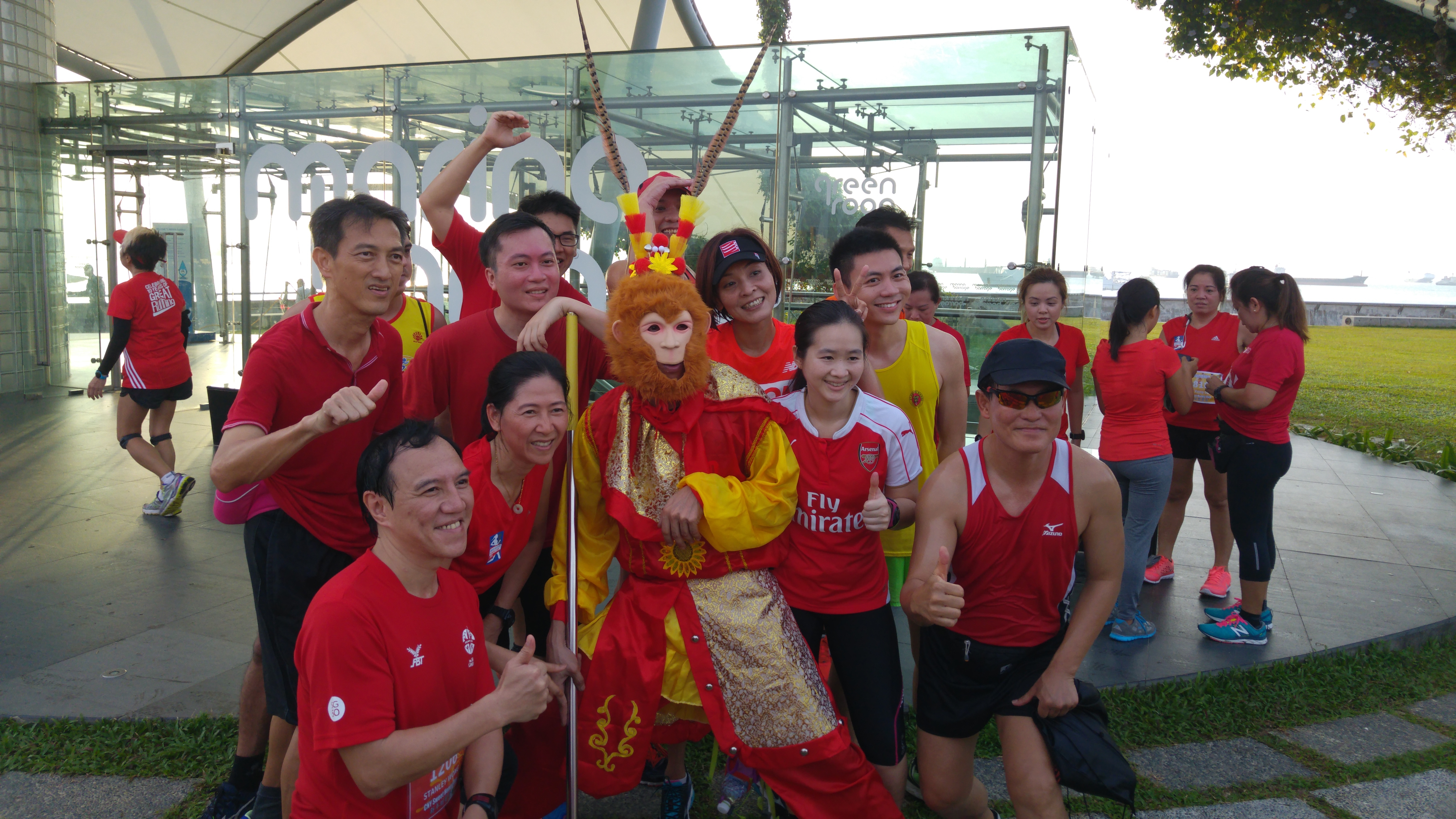 Exploring his surroundings and trying to figure out how to return to ancient China, this is where Monkey King accidentally stumbles upon a group of enthusiastic runners -who had organised a Fun Run to celebrate the Chinese New Year cum Valentine’s Day.