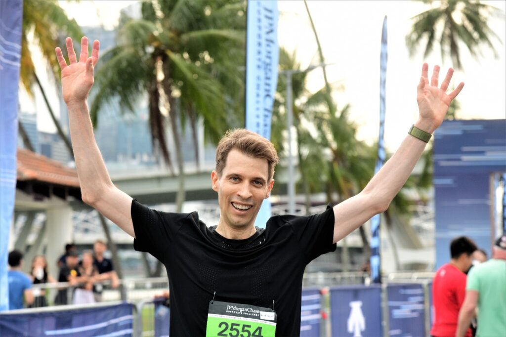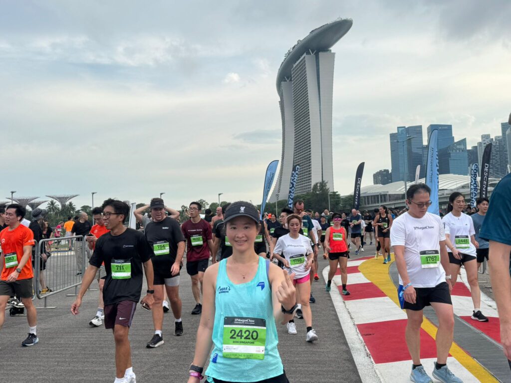 The green bibs were flagged off first. The race route was a straightforward route around the Marina Bay, with beautiful scenic views and an awesome vibe. I always enjoy this view and never tire of it.