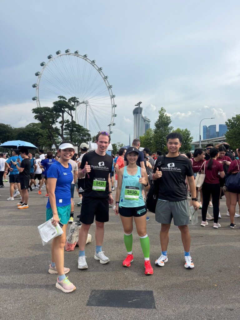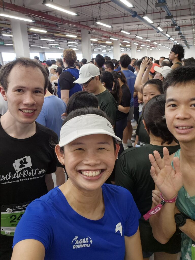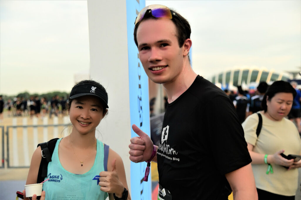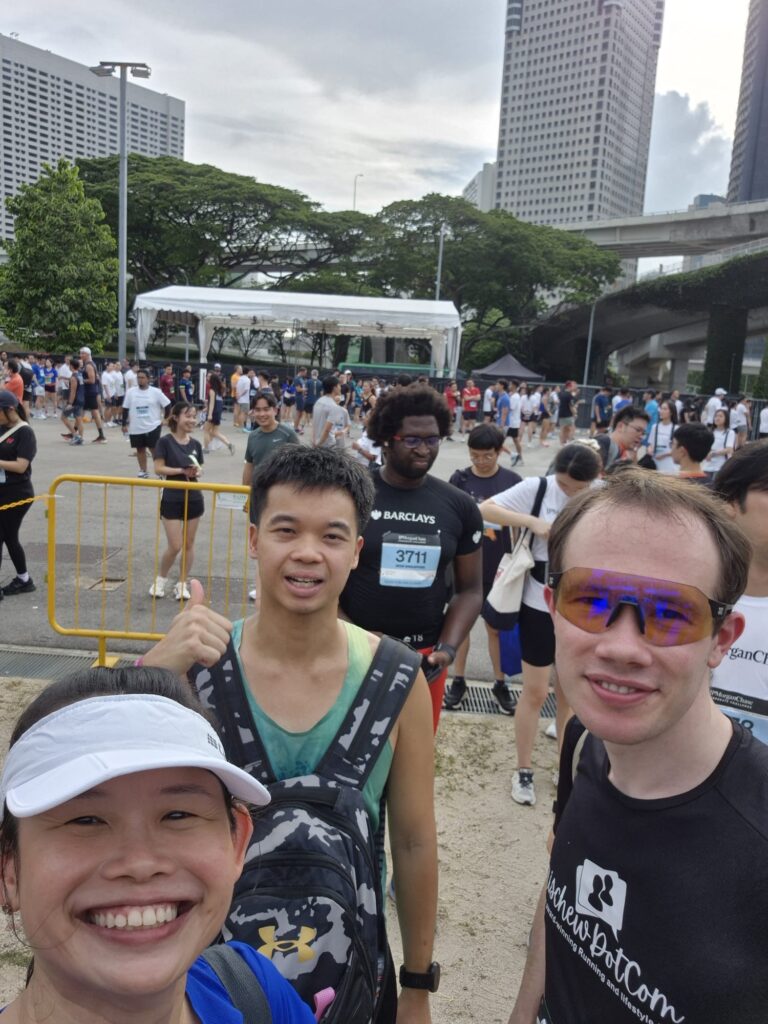 The 5.6KM run flagged off from the F1 Pit Building at 5:30pm. I arrived around 4:30pm and met up with my team for a quick photo before I headed into the start pens.