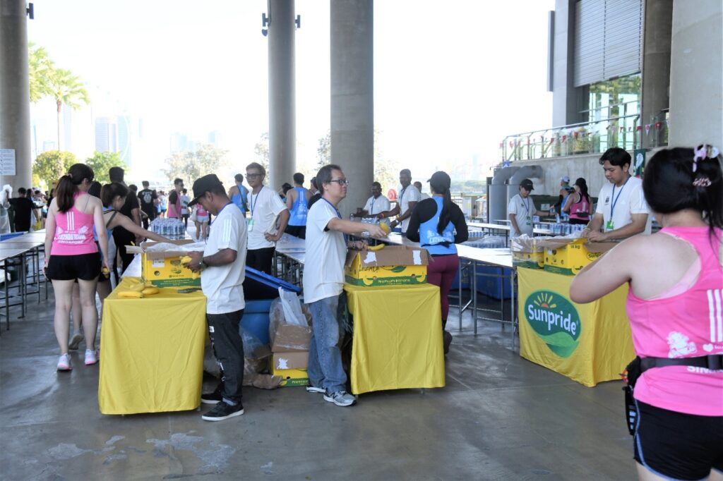 For the hydration points along the way, these were at regular intervals around 2.5km apart. This frequency is generally good for a hot and humid run like Singapore. However not all of them had isotonic drink. Some were serving plain water only. But I noted that others provided bananas and gels which was welcomed as runners need to replenish their energy for such long distance runs.