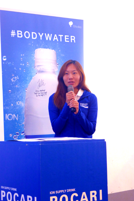 Pocari Sweat ambassador and Olympics marathoner, Neo Jie Shi, at a lunch event organised for her by Pocari Sweat.
