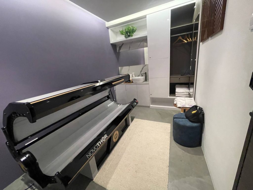 When you first head in for the therapy, NovoTHOR recommends that you take off all your clothes for best effect of the red light. But I was creating both photo and video footage during the session, so I opted to leave my bra and shorts on.