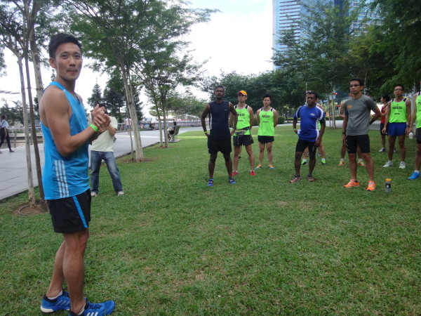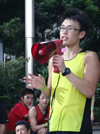 Melvin Wong prepares to give runners practical tips on how to warm up before races.