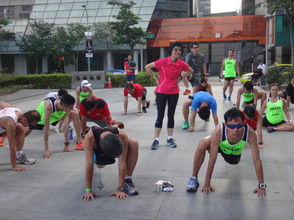 The first running clinic took place yesterday at One Marina Boulevard in Raffles Place, and featured competitive runner Melvin Wong – a sales associate at Bloomberg who won the Adidas King of the Road race in 2012, so he’s commonly known as the King of the Road. Dr Derek Li, a medical doctor who represented Singapore at the Macau Marathon in 2014, was the other speaker there.