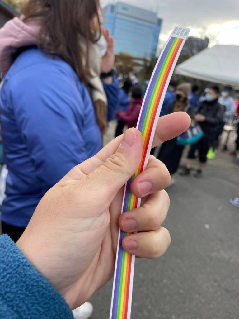 We made it in good time and passed the temperature check. We were required to take a wrist tag to show that we had cleared the temperature station. If we did not wear this, we would not be allowed to race.