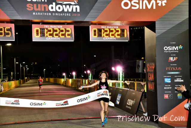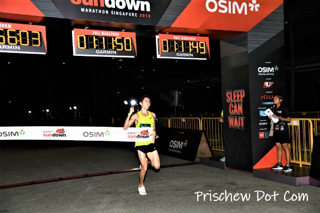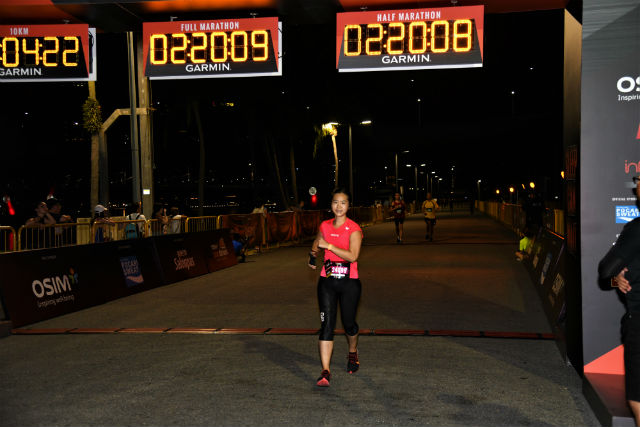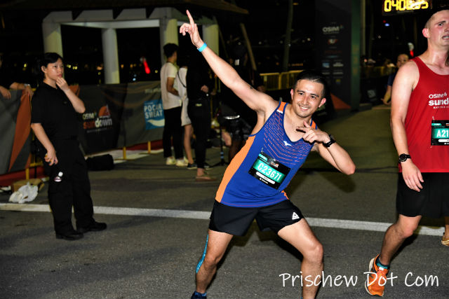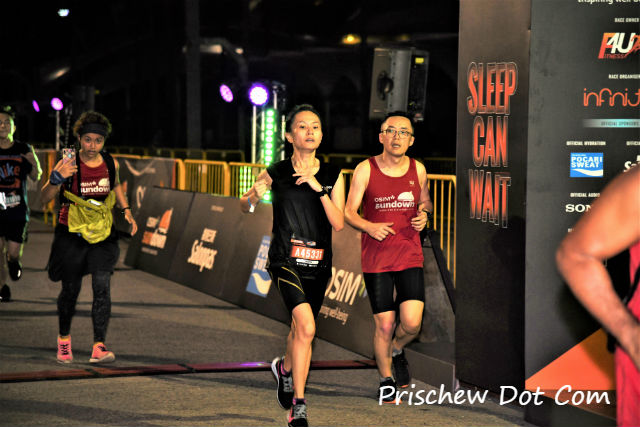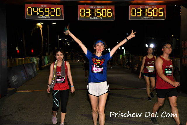 Naturally, it was such a relief to see the finish line ahead of me. It had been a challenging run throughout, battling against the humidity as well as my own internal body clock. Who on earth says that running Sundown Marathon is supposed to be easier than an early morning race?