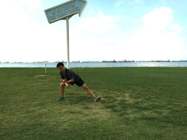 During the cool-down session, Loh demonstrated exercises to help key running muscles stretch and thus prevent cramping. These primarily include the stretching of the ITB, hamstrings, calves and buttocks.