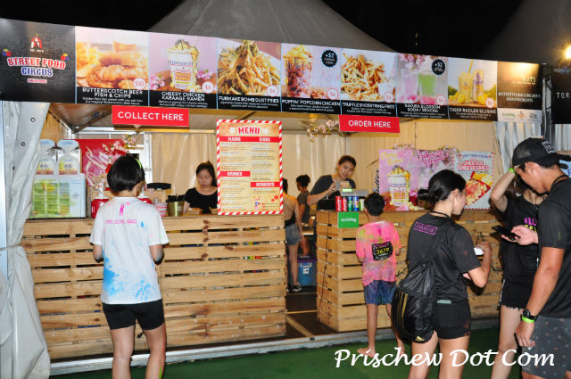 But there was plenty of merchandise available for sale at the race village, such as Illumi Glow Water, as well as glow in the dark apparel like headbands, tee shirts and waterproof lanyards, and a wide variety of food and drinks like fruit juices, hotdogs, ice cream, burgers and meat dishes.