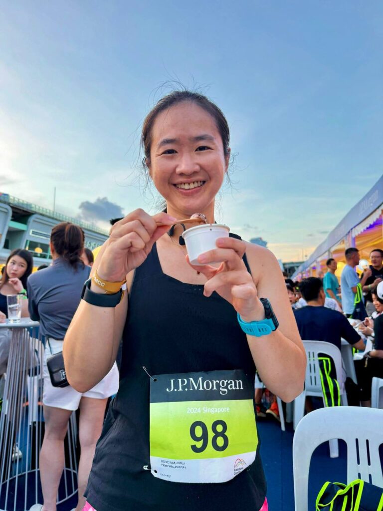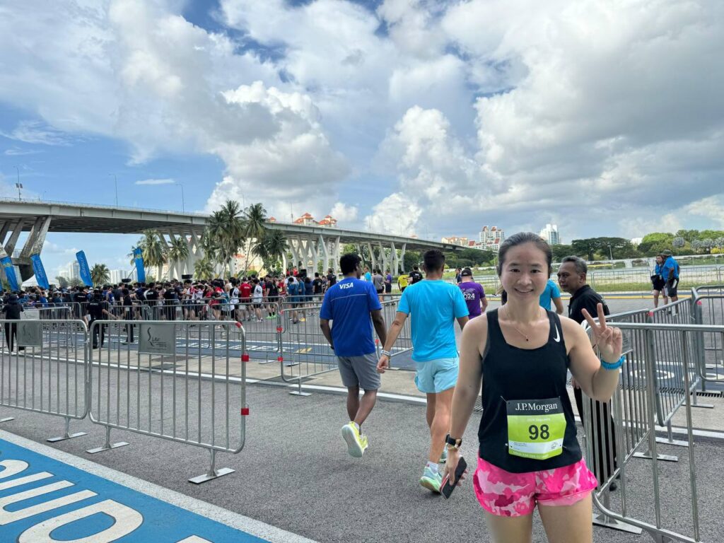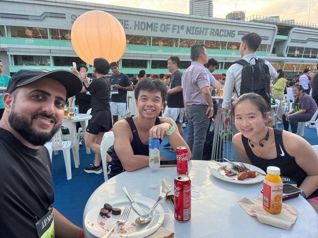 The race route was beautiful, flat and scenic and this helped to take my mind off the humidity. We ran down Republic Avenue and the Marina Promenade. Sights that we saw along the way include the Singapore Flyer, Marina Bay Sands and Tanjong Rhu. It is truly Singapore’s landscape at its best and J.P Morgan knew exactly what they wanted when they picked this route.
