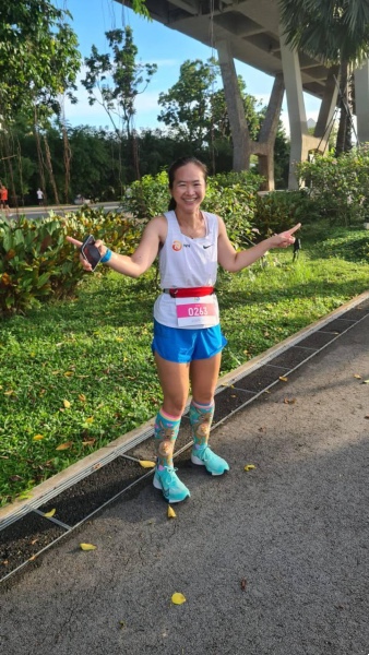 There was no marshal at the turning point. So Ben and I were not sure whether to turn or to go straight towards the Sports Hub.