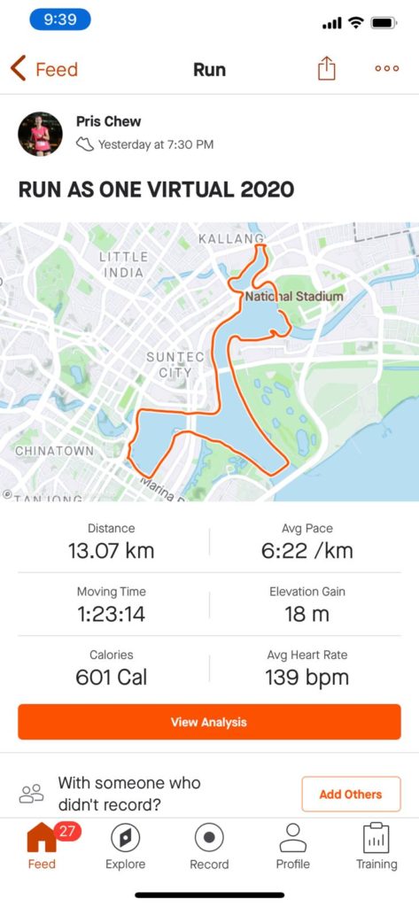 With both virtual and physical running race elements, I had been intrigued by the unusual concept of the RunAsOne race, when I first heard about this running event from my friends.