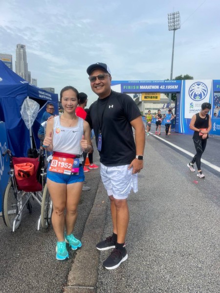 I saw my running coach, Ben Pulham, and it was very motivating to hear him call out my name when I was running passed by the Fullerton Hotel area.