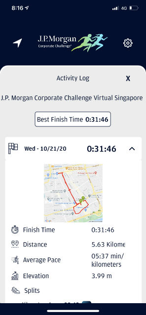“This  year’s inaugural JPMCC Virtual race gave everyone the flexibility of selecting their own scenic routes, adding an element of excitement for me as I chose to run past key landmarks from Singapore’s cityscape, including the Merlion and Marina Bay Sands.”