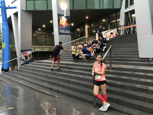 As there had been a slight drizzle outside, the majority of the runners, including me, had stayed inside at the Mochtar Riady Building as we did not want to stand around getting cold and wet.