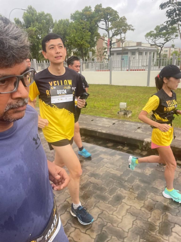 For about a couple of kilometres along the way, Marine Parade GRC’s Minister Tan Chuan-Jin was pacing alongside us.