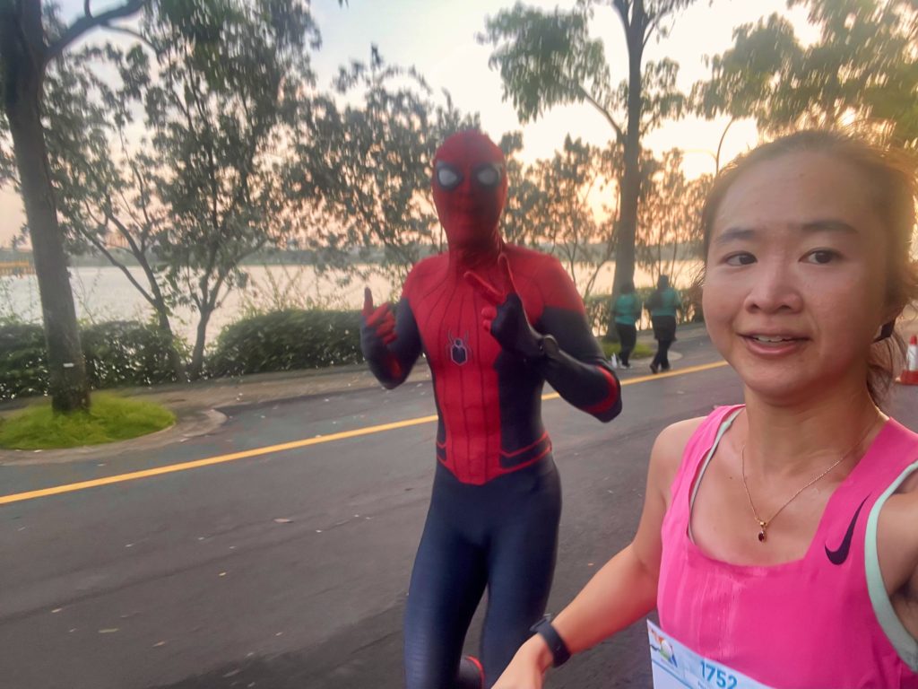 There was enough space for me to manoeuvre around in the start pen without feeling claustrophobic. I bumped into familiar faces such as Jenny Huang who was also running.