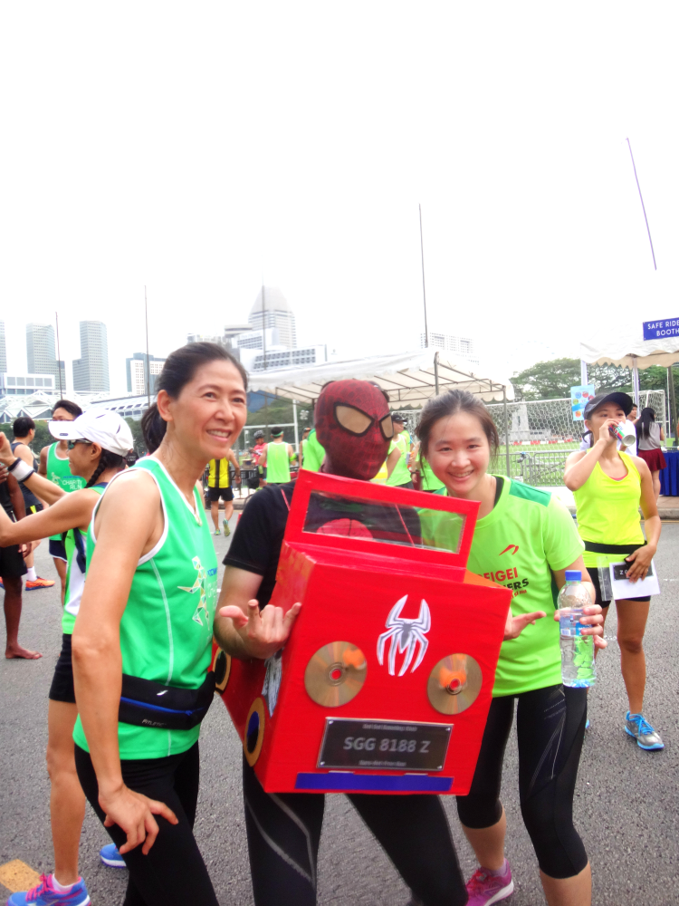 Right from the very beginning, I noticed some runners wearing fancy dress costumes. The runner who had stood out the most was probably the SpiderMan and his “SpiderCar.” I thought he was really creative and so it was not surprising, that Spiderman was the winner of a Best Dressed Costume contest in this run.