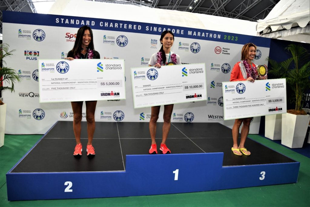 Winning the Singapore National Championships for elite local runners were Soh Rui Yong and Rachel See claiming the titles of men’s and women’s marathon champions and SGD $10,000 each, with finishing times of 2:40:34 and 3:05:51 respectively.