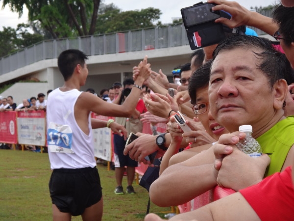 Added Liew, “But on the other hand, I did not want to take advantage of the situation. I flashed back to moments during the Tour de France when the peloton might slow down for a contender who suffers a bicycle mishap in a show of unspoken sportsmanship so that he can catch up. I also recalled how my team mate Soh Rui Yong stopped to encourage me after my double falls during the 2011 Army Half Marathon. Instinctively, I went from race pace to jogging pace, constantly looking behind and gesturing them to close the gap. I allowed two runners who were pushing the pace before the U-turn to overtake me, asking them whether they were okay as well.”