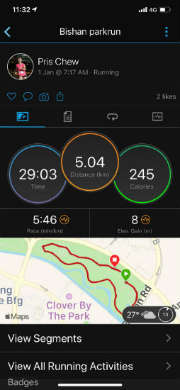 The Bishan parkrun route is pretty flat and comprises of two laps of the course, of which I had completed in just over 29 minutes.