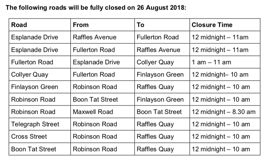 This also means that with the race flagging off from the Esplanade Bridge and taking runners through the Central Business District, Marina Bay area, and past the Singapore Sports Hub before ending at the Padang along St. Andrew’s Road, there will be several road closures during the event.