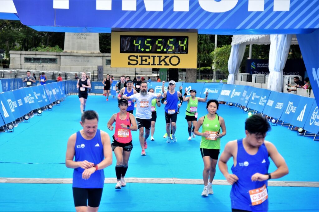 Seeing the Anderson Bridge felt good because it meant that the race was finishing soon. I crossed the finish line at the Padang in a time of 4.43:50. I felt relieved and happy that it was finally over and that I could now rest.
