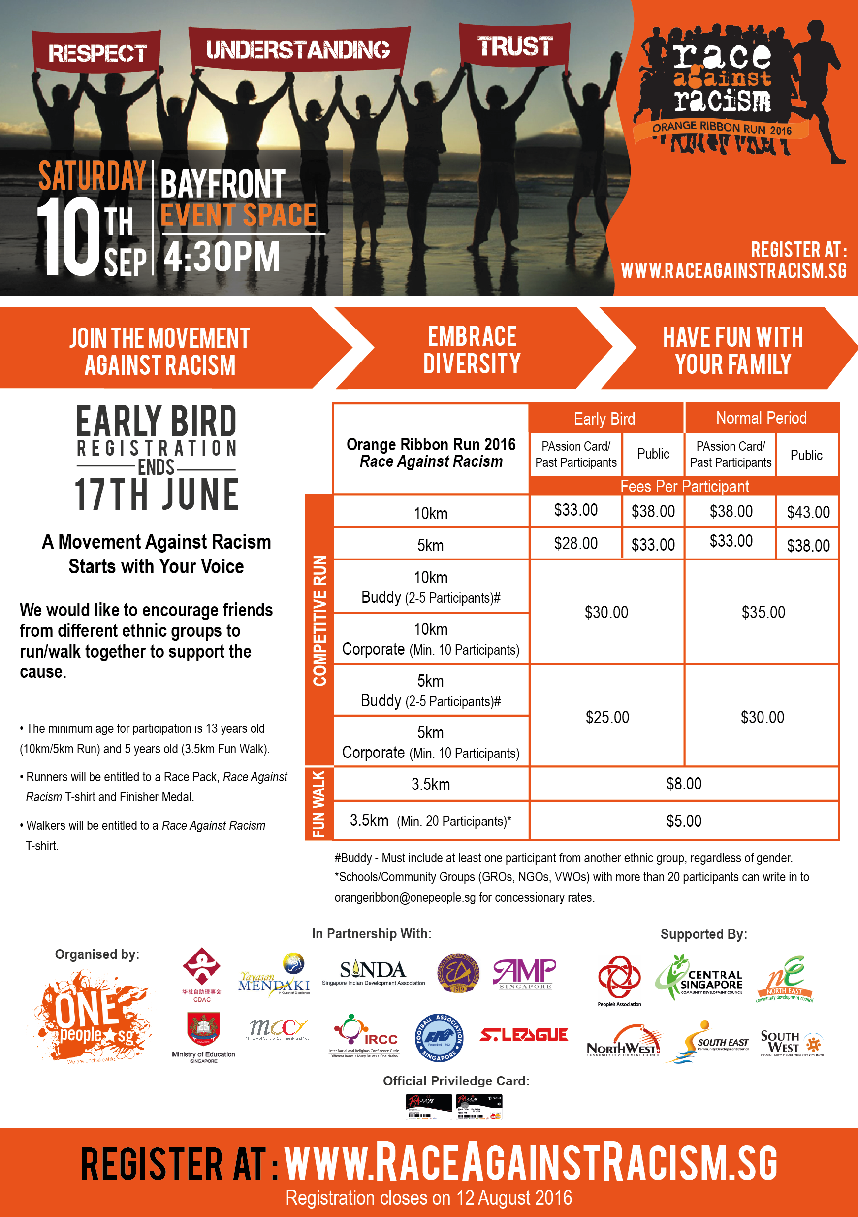 Orange Ribbon Run is an excellent platform for Singaporeans to come together and show their support for racial harmony.
