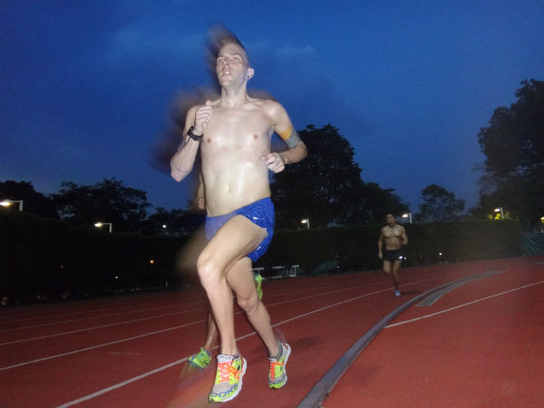 But about midway through the workout, they began to show that they too, are human, after all. While they were able to maintain the 76-seconds lap pace throughout the entire workout, they were panting heavily and resting by jogging slowly on the grassy area in the centre of the stadium track – between the interval sets.