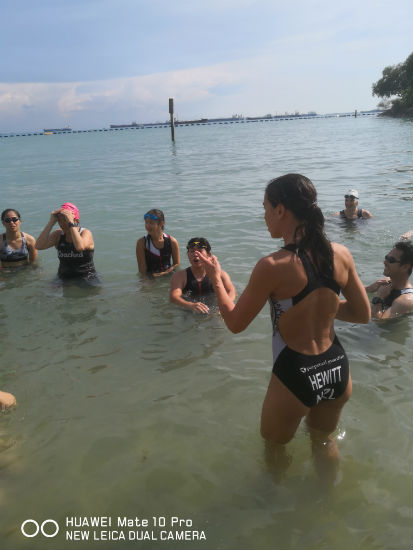 And we did a few swim drills in the water too, for instance, we practised drafting each other, firstly from the hip and secondly from the ankles, so that we could get a feel of which one was easier and more beneficial for us in triathlon and swim races.