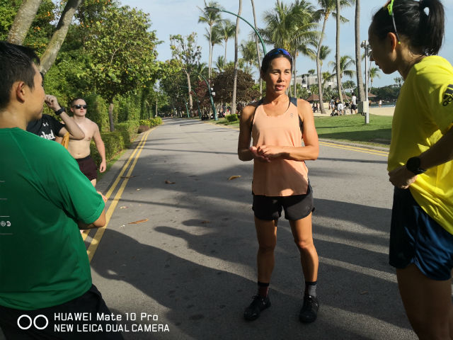 For the running segment, which had started at about 5pm, we began with an easy warm-up lap of a few hundred metres around the pavement within the Tanjong Beach vicinity, before Andrea then led us through several of the running drills that she practises regularly.