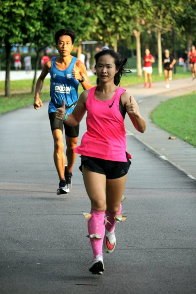 Majority of runners were decked out in red and white, the colors of the Singapore flag. I had a small speaker and I was using it to play National Day songs as I ran along.
