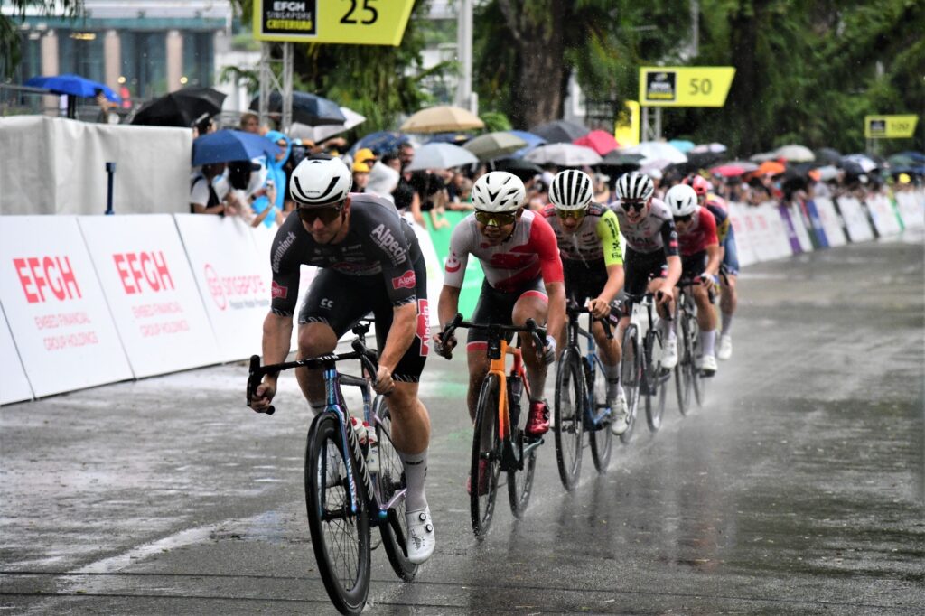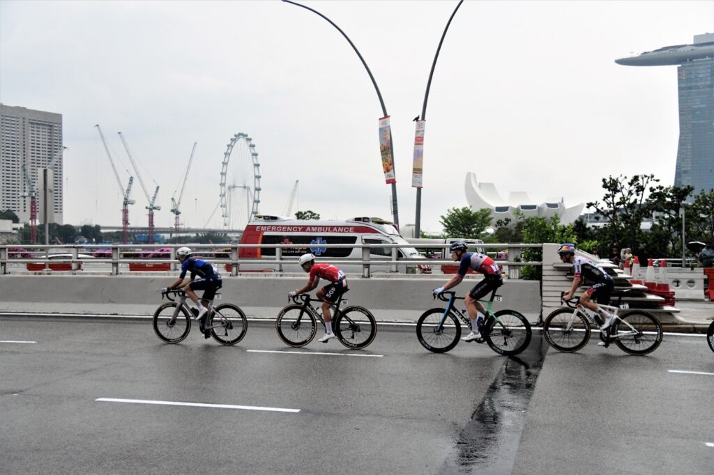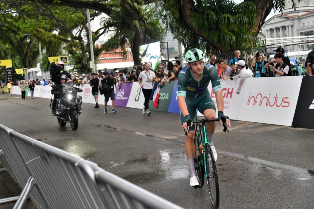 Singapore national cyclists Thomas Tong and Arfan Faisal made attempts to take the lead of the 40-strong world class peloton in the early laps, EF Education-EasyPost’s Ben Healy launched a brave solo attack in the final lap but was eventually reeled in ahead of the final sprint.