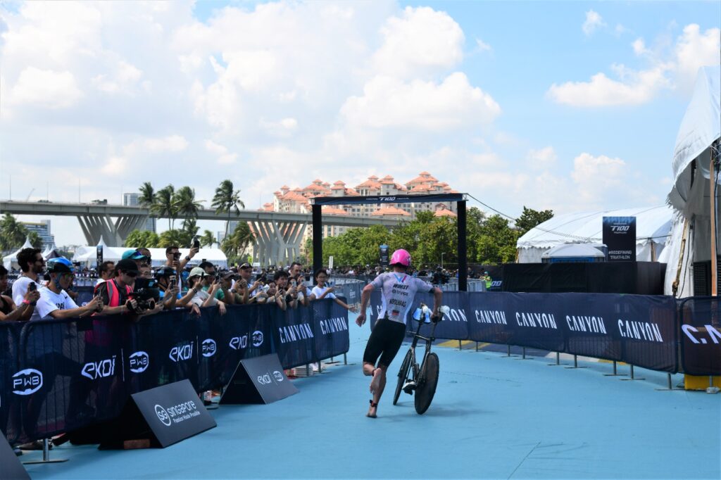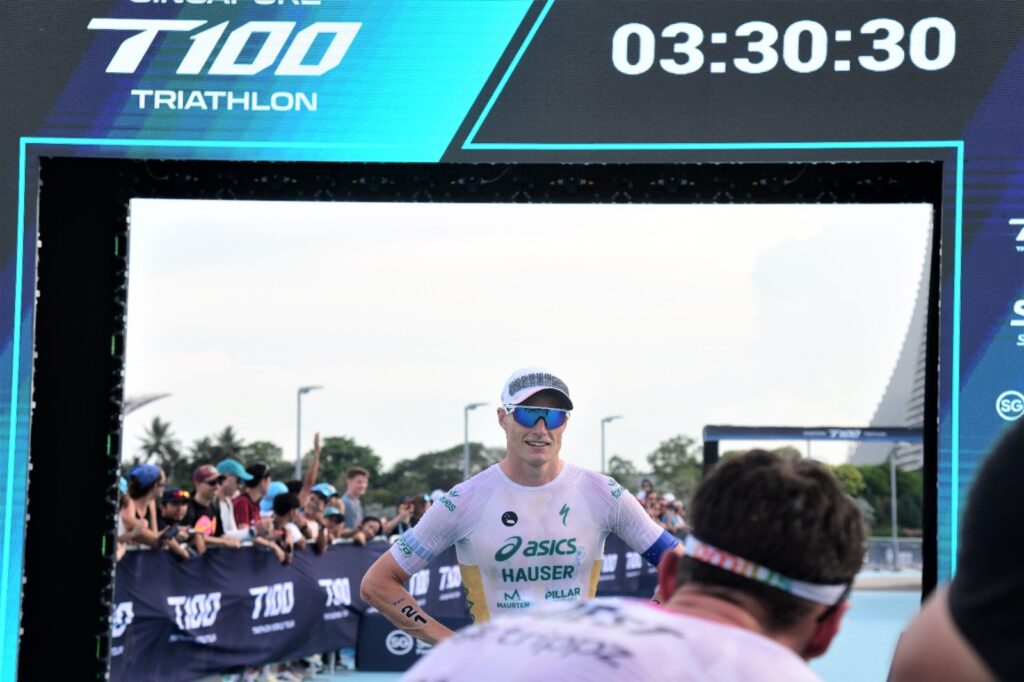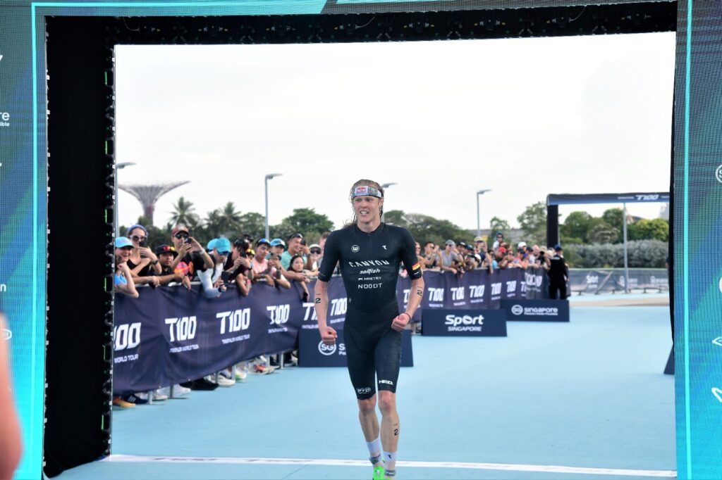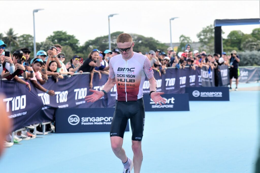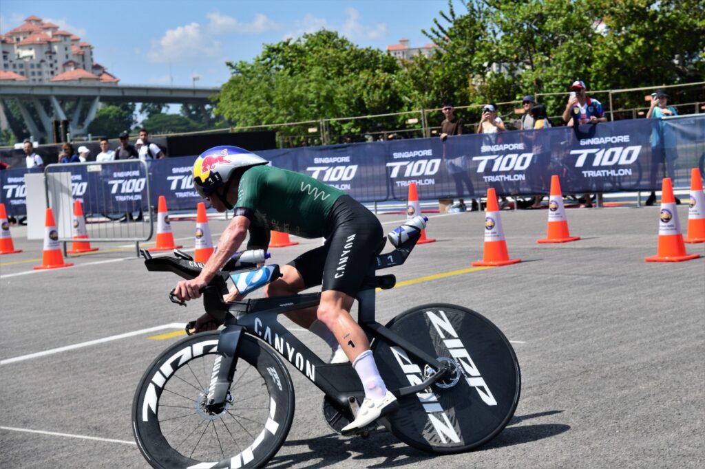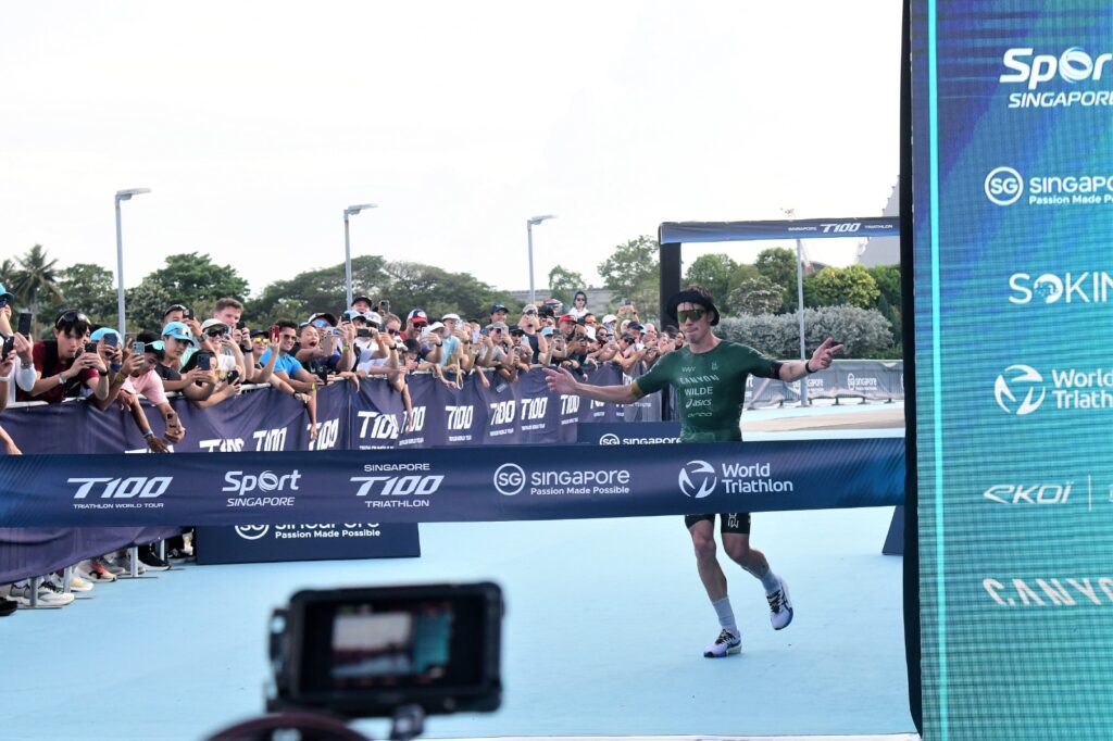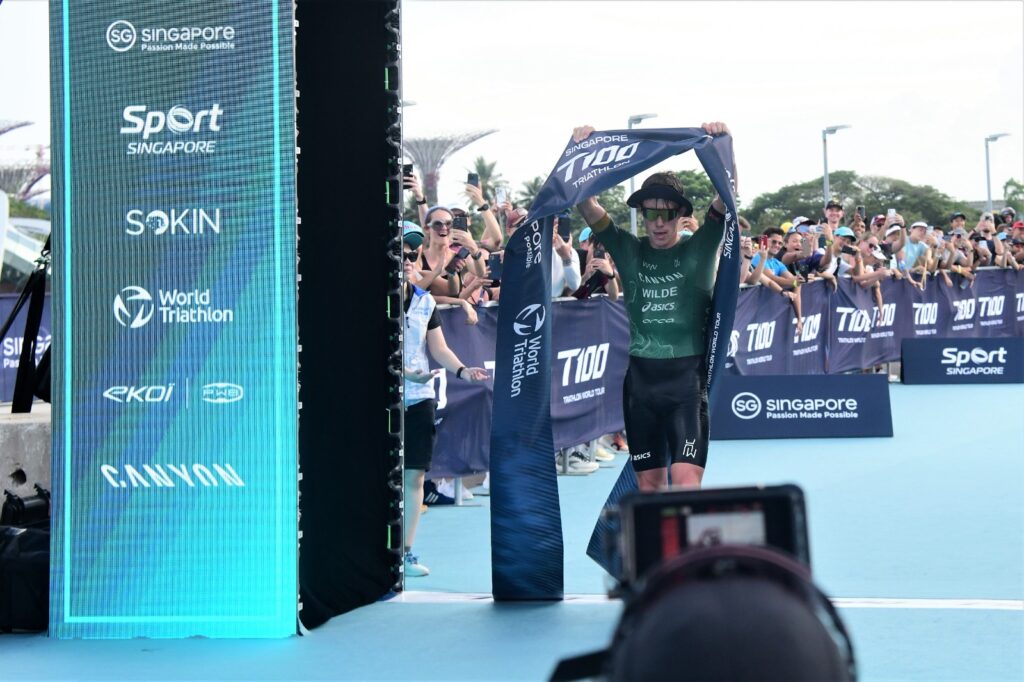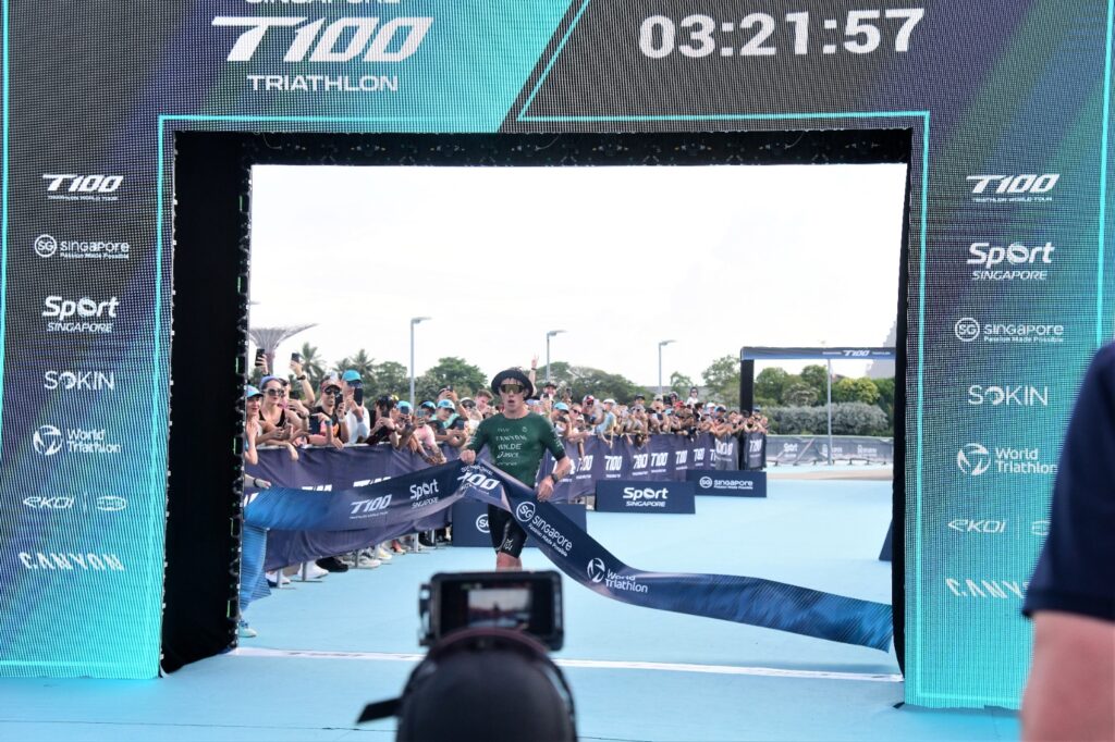 At the Singapore T100 Triathlon on Saturday, the defending champion delivered a statement performance, storming to victory by a record 6 minutes and 21 seconds, the largest winning margin in men’s T100 history.